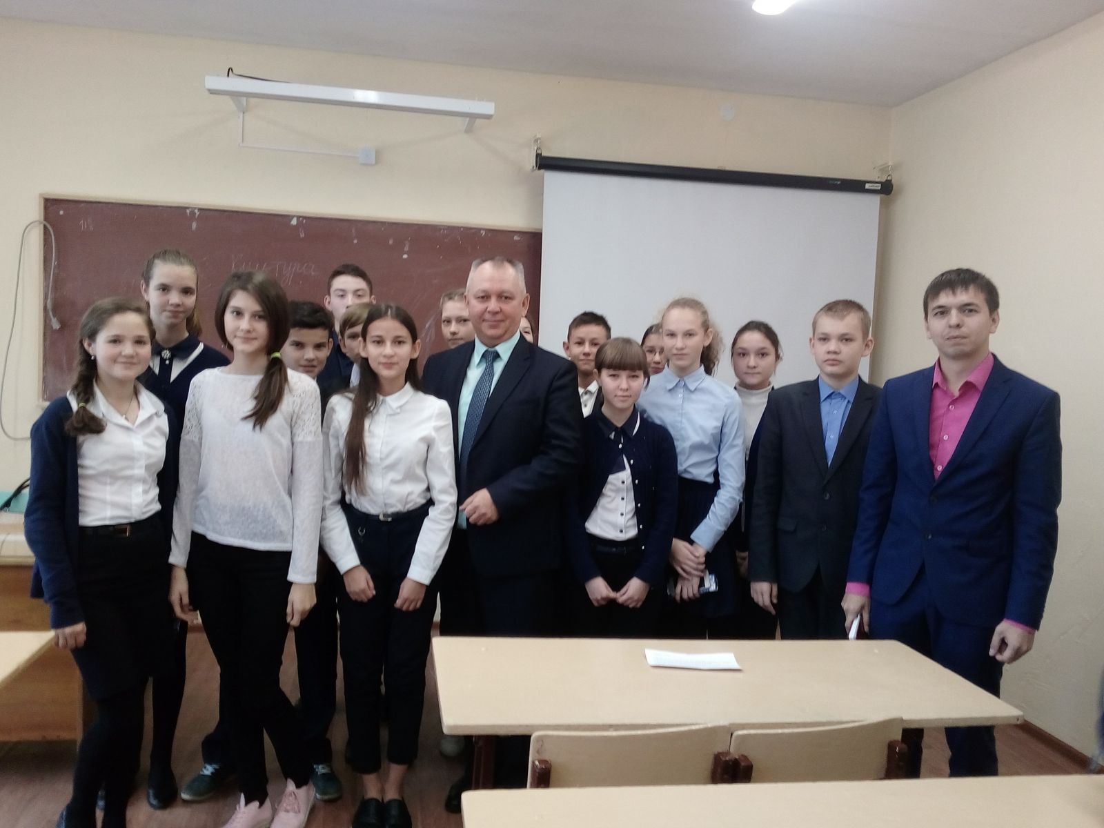 С 23 по 28 октября в школе прошли парламентские уроки на тему «25 лет Конституции РТ». Для учеников 8-11 урок провели Председатель суда Марс Миндубаев, помощник председателя суда Светлана Бояринцева и помощник судьи Айдар Сафиуллин. Детей познакомили с историей создания Конституции и с ее содержанием. После дети задавали вопросы Председателю суда, на которые он с радостью отвечал.