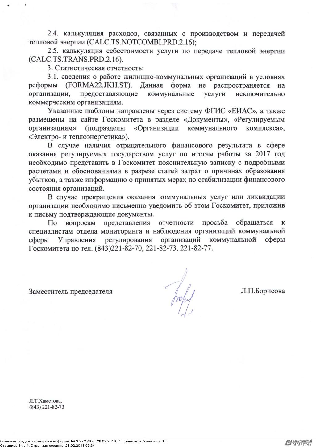«О водоснабжении и водоотведении», на основании Положения о Государственном комитете Республики Татарстан по тарифам (далее - Госкомитет), утвержденного постановлением Кабинета Министров Республики Татарстан от 15.06.2010 № 468, Госкомитет осуществляет анализ результатов финансово-хозяйственной деятельности регулируемых организаций и анализ влияния установленных тарифов (надбавок к тарифам) на финансово-экономическое состояние указанных организаций по результатам работы за 2017 год. Учитывая изложенное, регулируемым организациям необходимо представить в срок до 31 марта 2018 года запрашиваемую информацию в формате шаблонов ЕИАС.