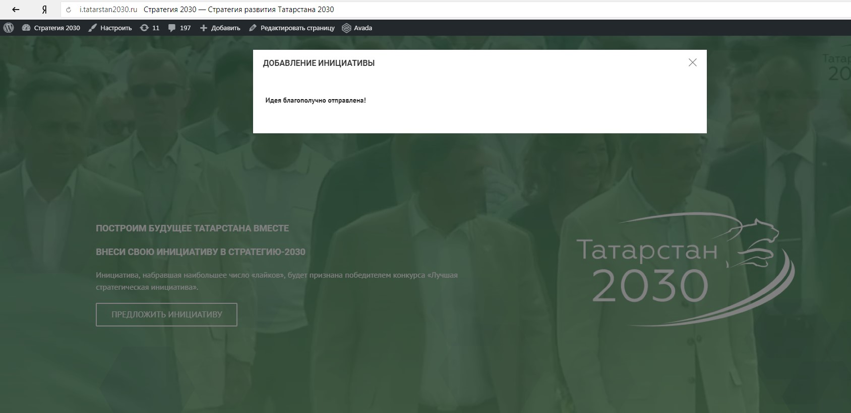 1. Перейдите на сайт стратегических инициатив по адресу http://i.tatarstan2030.ru и нажмите на кнопку «Предложить инициативу».