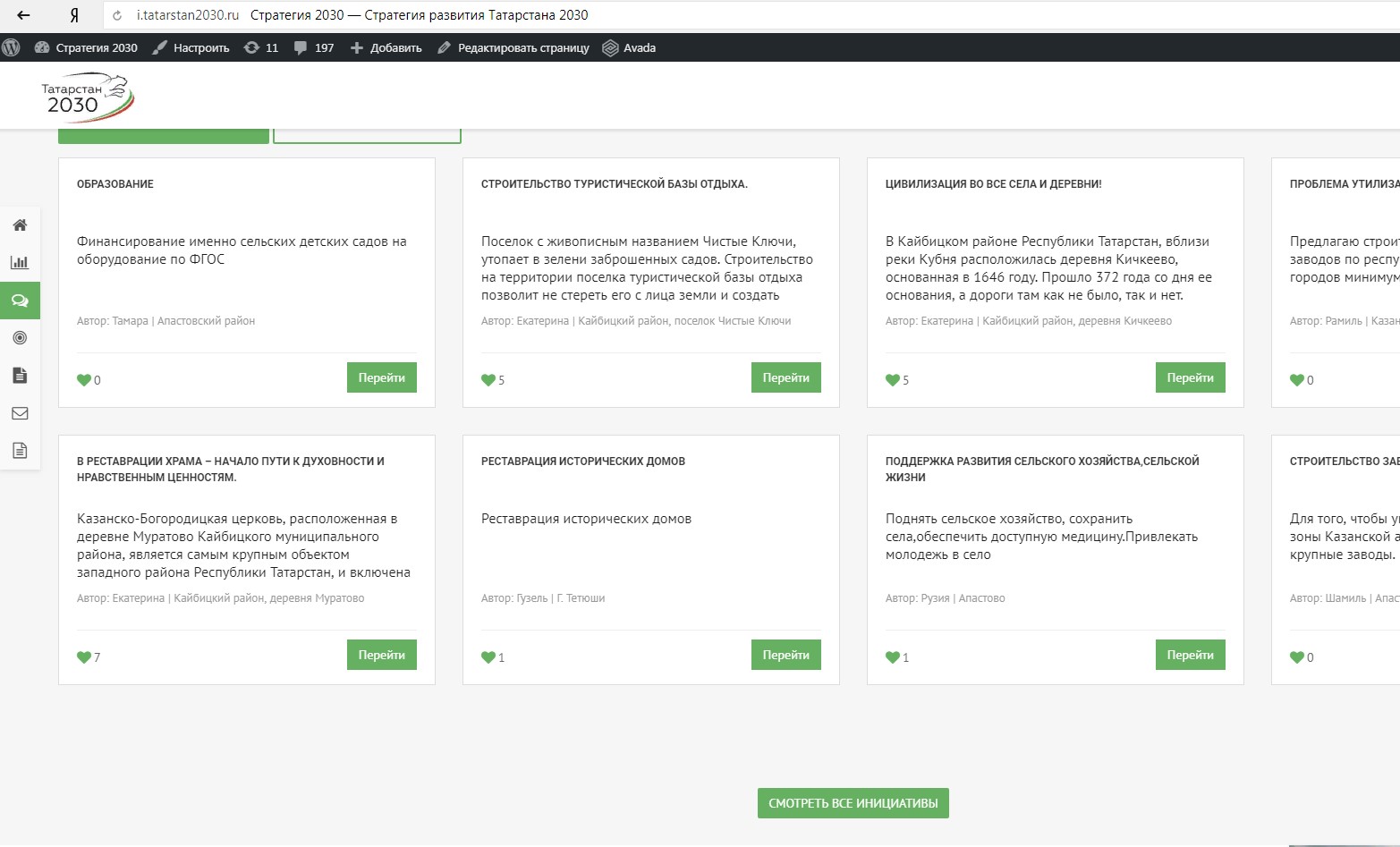 5. Проверить размещена Ваша инициатива на сайте или нет можно, прокрутив интерфейс сайта http://i.tatarstan2030.ru до раздела «Стратегические инициативы». Далее нажать на кнопку «Смотреть все инициативы».