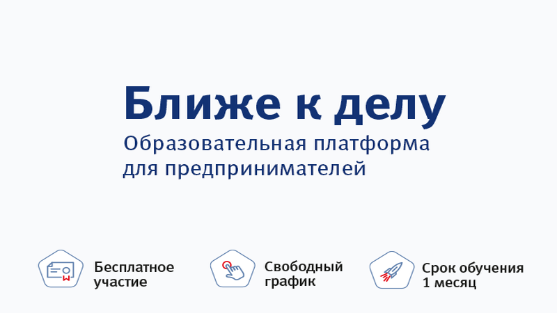 «Ближе к делу» это бесплатная образовательная платформа для всех, кто хочет построить успешный бизнес. Интенсивный формат обучения подходит для всех, кто не привык ждать и готов применить знания на практике. Всего за один месяц обучаемый получит практические знания по управлению командой, финансами, праву, продвижению бизнеса и продажам. В конце обучения выдается сертификат об окончании курса.