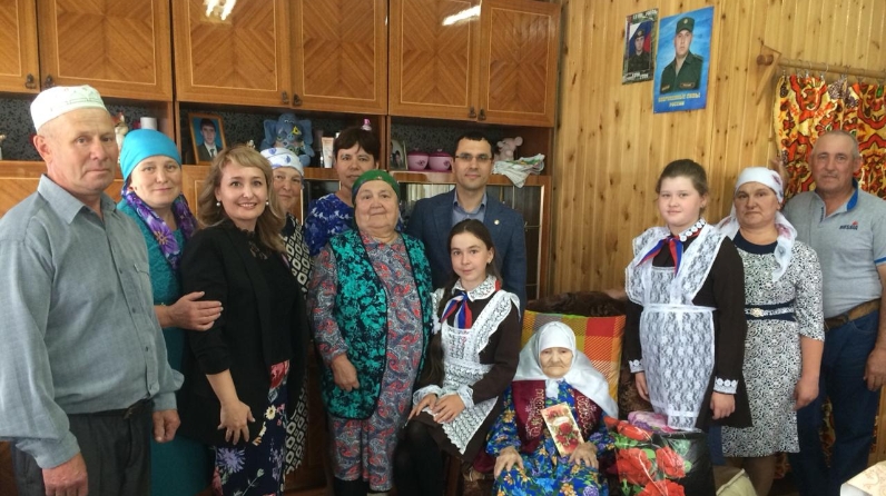 27 мая 2019 года Глава Рыбно – Слободского района Ильдар Рашитович Тазутдинов, заместитель руководителя Исполнительного комитета по социальным вопросам Вафина Айгуль Камилевна, поздравили с 95 - летием труженика тыла Великой Отечественной войны Сунгатуллину Бибикамалу Насибулловну из села Кукеево. С искренними пожеланиями долголетия, здоровья Глава Рыбно – Слободского района Ильдар Рашитович Тазутдинов вручил поздравительное письмо от имени Президента РФ Владимира Путина и от себя лично памятный подарок.