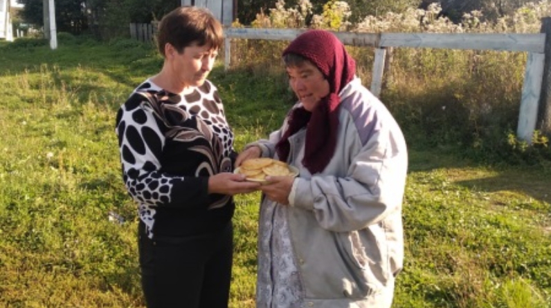 Бердибяковский СК. В рамках проведения добровольческой акции "Осенняя неделя добра-эстафета добрых дел" 6-го августа я угостила сладкими блинами Гульнару Шайдуллину, проживающую на воспитании матери-инвалида.