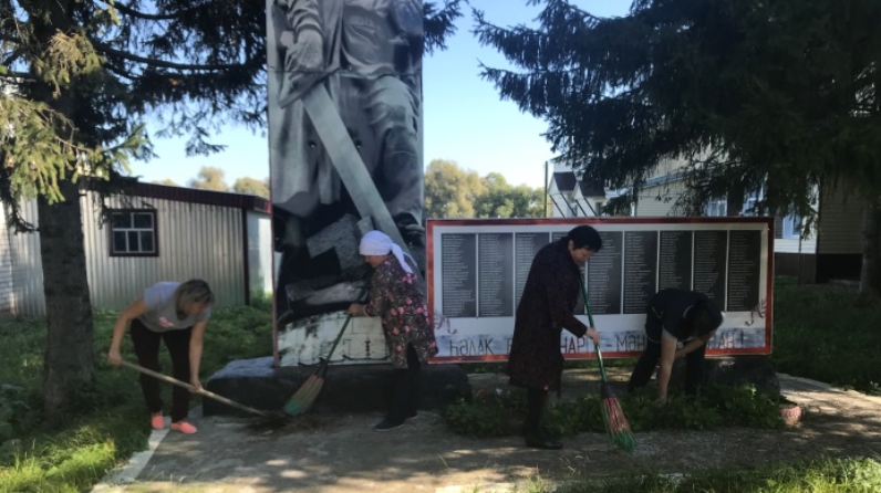 Уборка территории памятника павшим односельчанам в ВОВ.