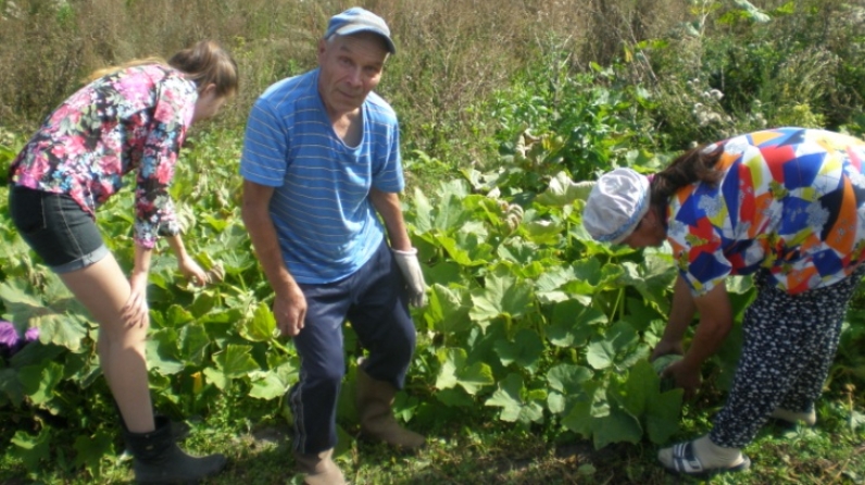 Больше-Салтанский СДК. Акция «Неделя добрых дел». Работники СДК со студенткой Шайхутдиновой Алиной помогли собрать урожай тыквы пенсионеру Касимову Рауфу.