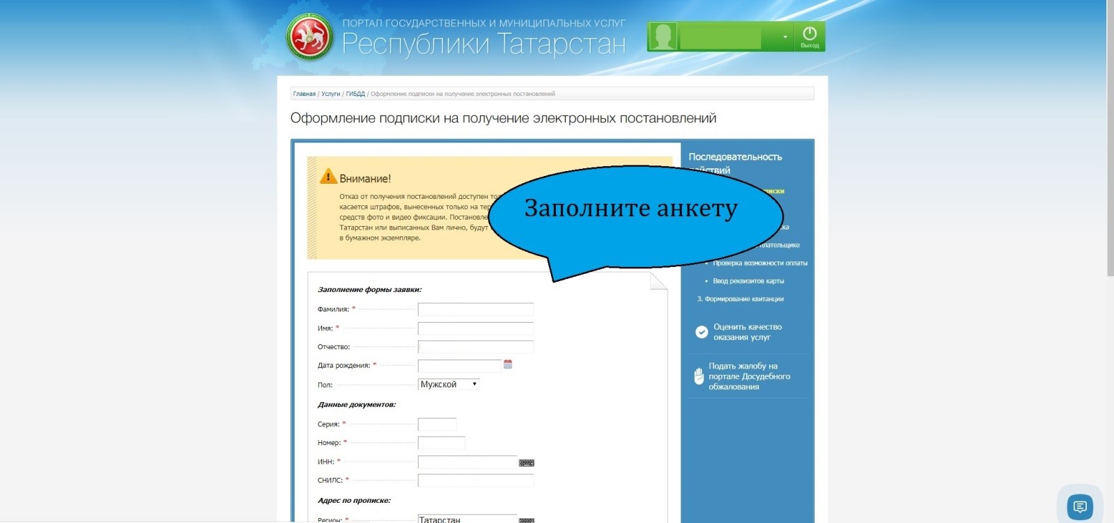 Для оформления подписки на получение электронных постановлений необходимо зарегистрироваться на сайте https://uslugi.tatarstan.ru .