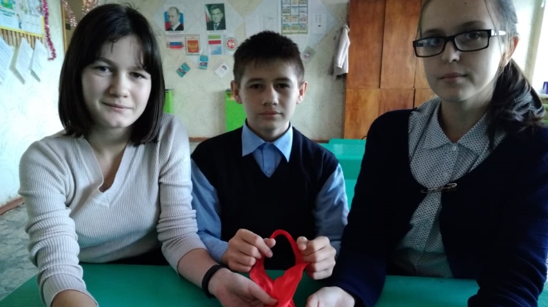 Мало-Ошнякский СК. Беседа с молодёжью «Спид наш – враг» показали видеоролик, на мастер-классе сделали эмблему из ленточки.