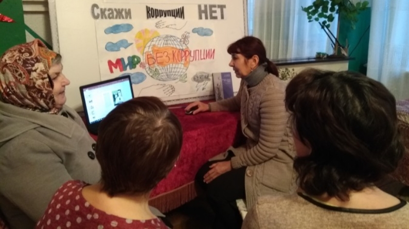 В Бетьковском СДК совместно с работниками сельского поселения провели час правовой информации «Мы за мир - без коррупции». Секретарь сельского поселения рассказала о борьбе с коррупцией, задала вопрос: в каких службах, организациях, учреждениях, с Вашей точки зрения, среди должностных лиц, чаще всего встречается коррупция? На эту тему дискутировали с присутствующими, посмотрели презентацию «Мы против коррупции». Оформили стенд «Честное имя - лучше богатства».