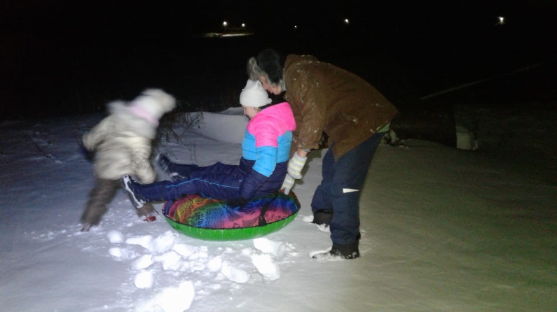 Вечернее катание с горки на санках.