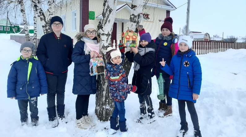 Юлсубинский СДК. Ребята сделали кормушки для птиц, повесив на дерево. И теперь каждый день присыпаем зерно в кормушки и следим за птицами улетаютающие сытыми.