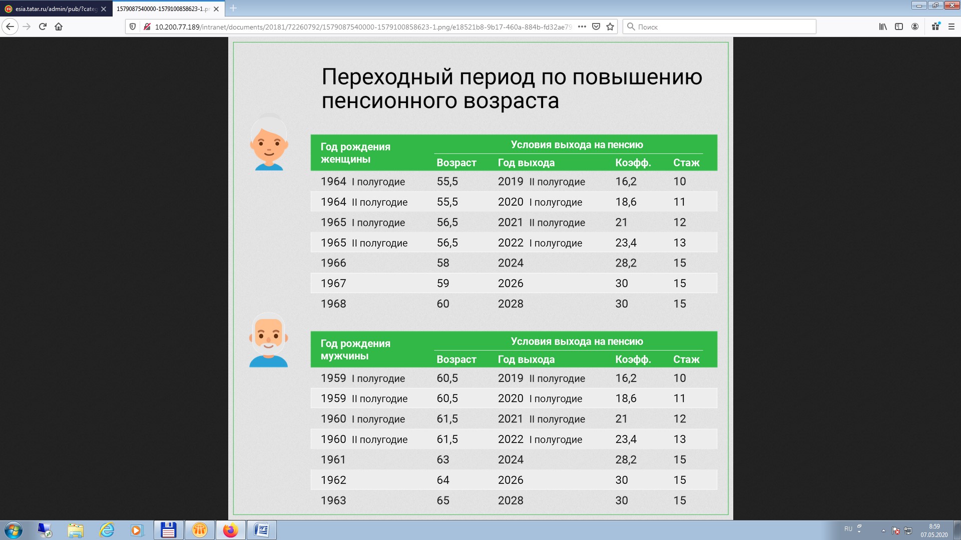 Льготный выход на пенсию также сохранился у педагогов, врачей и представителей творческих профессий, которым выплаты назначаются не по достижении пенсионного возраста, а после приобретения необходимой выслуги лет. Пенсия тем не менее назначается им с учетом переходного периода по повышению пенсионного возраста, который вступает в силу с момента приобретения необходимой выслуги лет по профессии. Например, школьный учитель, выработавший в апреле 2020-го необходимый педагогический стаж, сможет выйти на пенсию в соответствии с переходным периодом через полтора года, в октябре 2021-го.