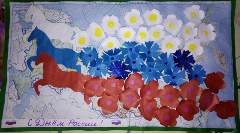 МБУ»РДК». Поздравительная открытка ко Дню РОССИИ. Работа участницы клуба любителей рукоделия Корноуховского СДК "Умелые ручки" Молгачевой Софии. Фото от заведующего Хабибуллиной Гузель.