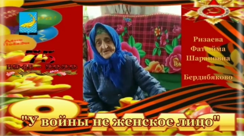 МБУ «РДК». 75 летие Победы ВОВ. Проект "У войны не женское лицо". Ризаева Фатыйма Шараф кызы кызы сугыш чорларында кургэн авырлыклар белэн уртаклаша. Видео от заведующего Бердибякского СК Толстовой Евдокии и Рустэма Змеева.