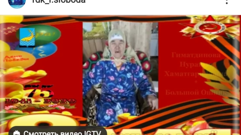 МБУ «РДК». 75 летие Победы ВОВ. Проект "У войны не женское лицо". Олы Эшнэк авылында яшэуче Гыйматдинова Нурания Хэмэтгариф кызы. Видео от заведующего Больше-Ошнякского СДК Рисаевой Фанзили и Рустэма Змеева смотрите на Инстаграмме РДК.