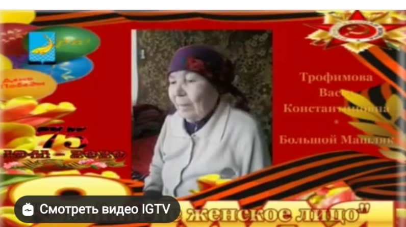 МБУ «РДК». 75 летие Победы ВОВ. Проект "У войны не женское лицо". Трофимова Васса Константиновна. Видео от заведующего Больше Машлякского СДК Афзаловой Дании и Рустэма Змеева смотрите на Инстаграмме РДК.