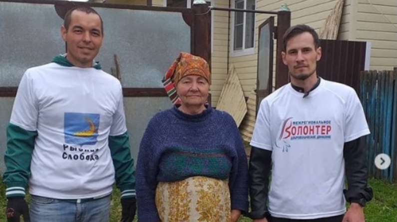 Группа волонтёров из ДЮСШ, в считанные минуты навели порядок на придомовой территории ветерана.