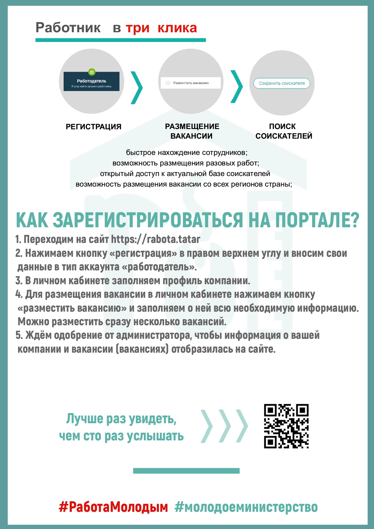 и сезонные работы на протяжении всего года. Реализация проекта способствует трудоустройству молодежи, построению карьеры молодыми специалистами, популяризации рабочих профессий среди молодежи, расширению сети потенциальных работодателей и обеспечению работодателей проверенными молодыми специалистами. Сервис позволяет работодателям в несколько кликов находить молодых специалистов и проводить с ними собеседования для определения более подходящих кандидатов на вакантные должности.