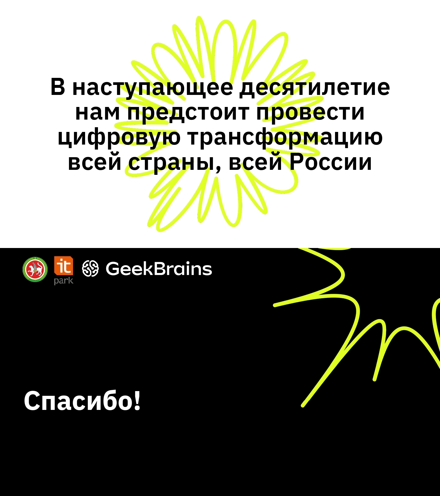 Информируем Вас о том, что Министерство цифрового развития государственного управления, информационных технологий и связи Республики Татарстан совместно с образовательной платформой GeekBrains и государственным автономным учреждением «Технопарк в сфере высоких технологий «ИТ-парк» (далее – ГАУ «ИТ-парк») запускает в регионе бесплатную программу по профессиональной ориентации «Карьерная мастерская».