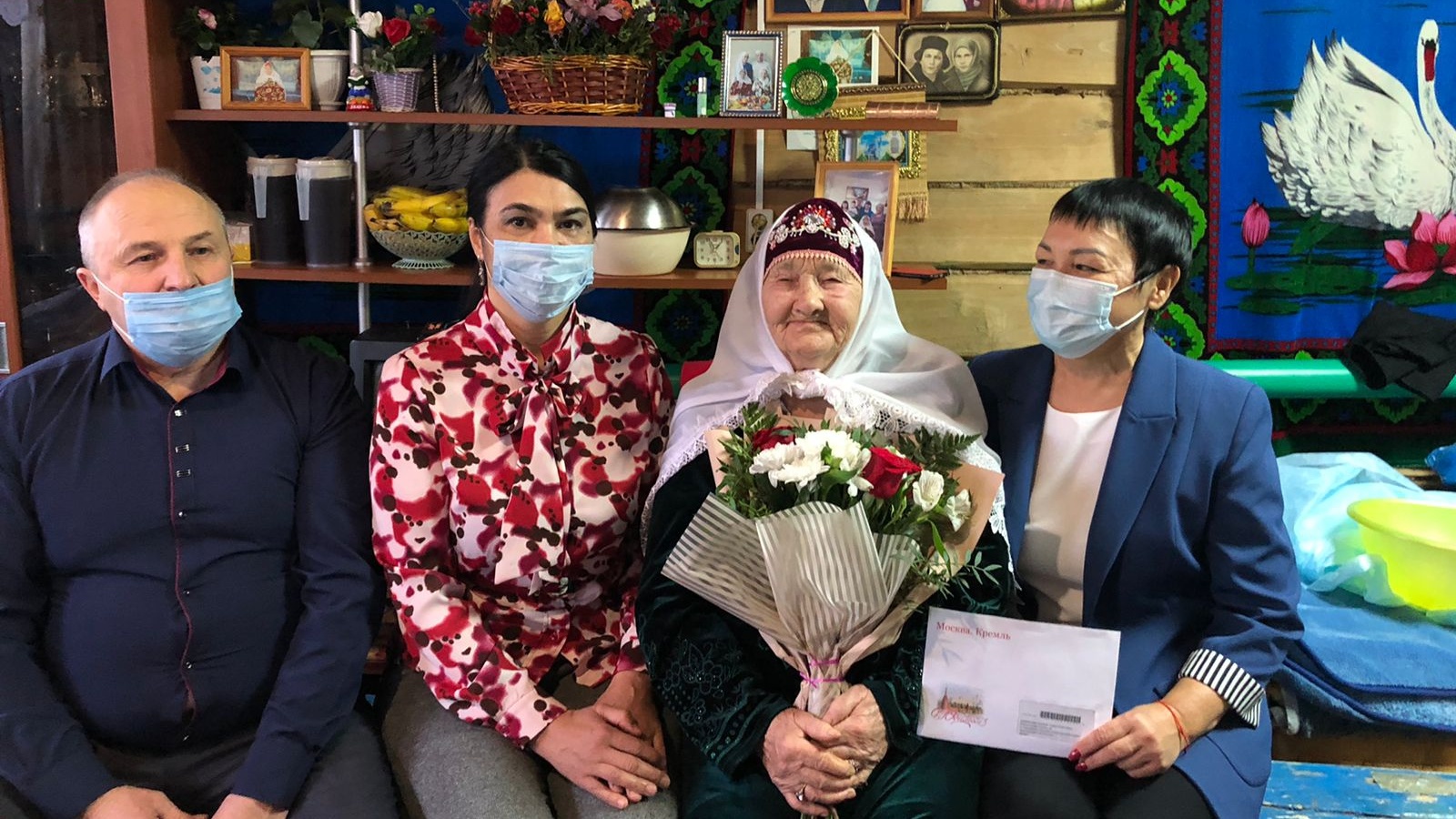 Сегодня с 90-летием поздравили труженика тыла Великой Отечественной войны Шафикову Фаимю Габдулхаковну из села Тавларово. В поздравлении принимали участие заместитель Главы Рыбно – Слободского муниципального района Ахметзянова Фирдания Гумаровна,консультант отдела социальной защиты Шакирова Нурия Габдулловна, Глава Шеморбашского сельского поселения Сафин Исмагил Нагимович. С искренними пожеланиями долголетия,здоровья была вручена открытка от имени Президента РФ В.В.Путина, от имени Главы района вручен памятный подарок.