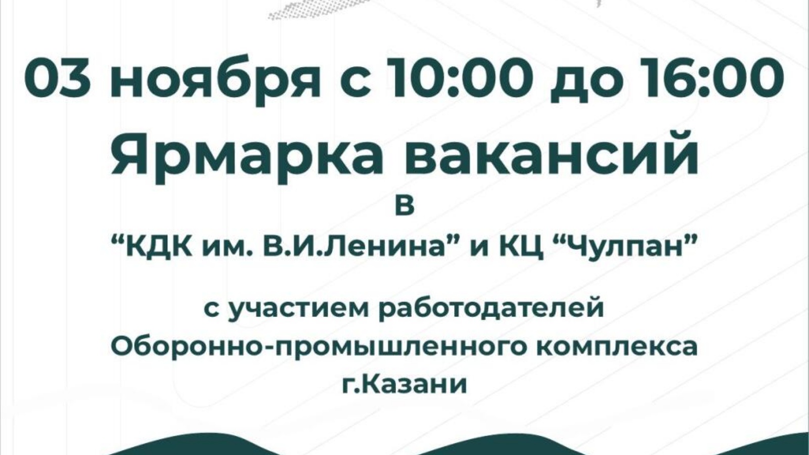 ГКУ «Центр занятости населения г.Казани» проводит 3 ноября 2022 года ярмарку вакансий с приглашением предприятий оборонно-промышленного комплекса г.Казани.