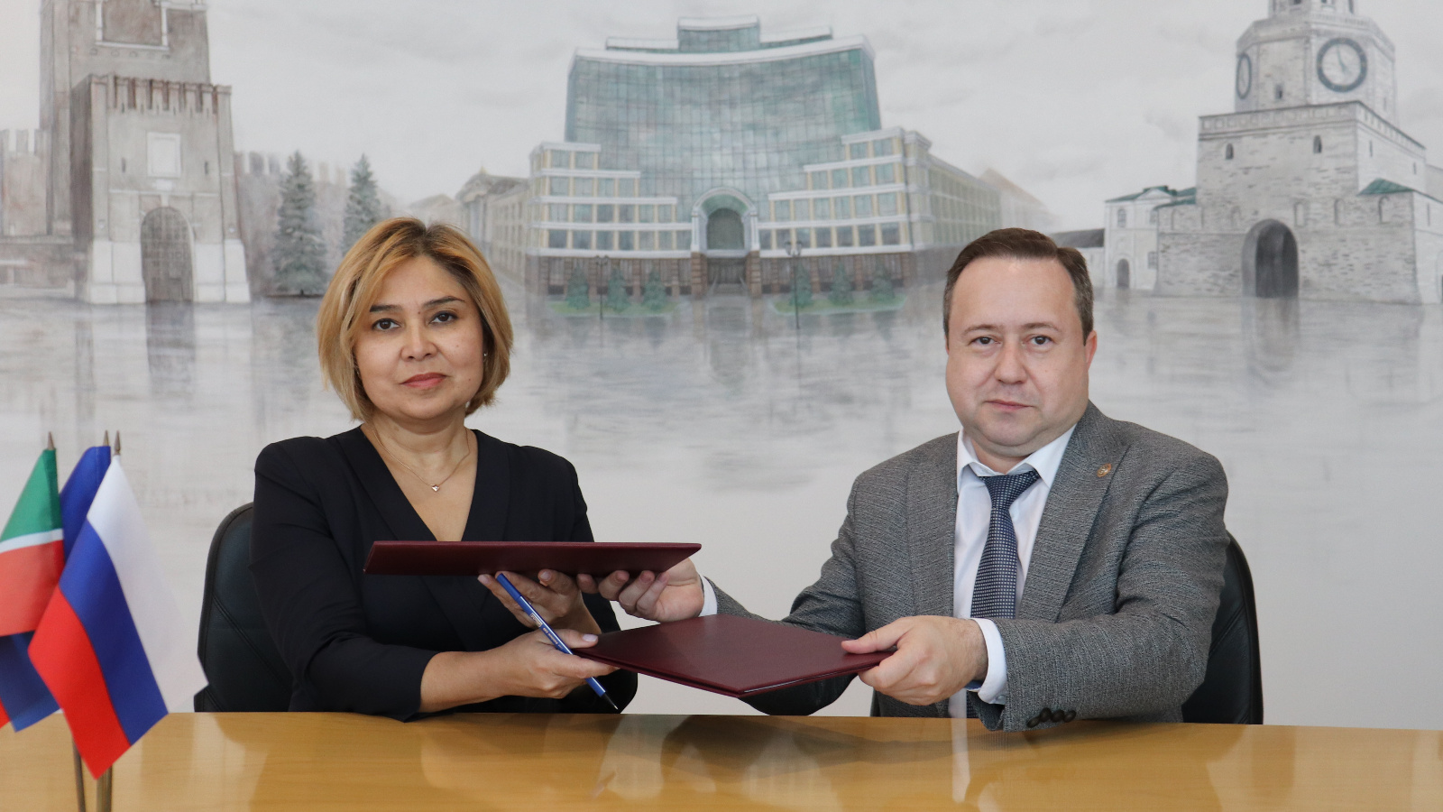 Управляющий Отделением СФР по Республике Татарстан Эдуард Вафин и руководитель филиала государственного фонда поддержки участников специальной военной операции «Защитники Отечества» Гузель Удачина подписали соглашение о сотрудничестве.
