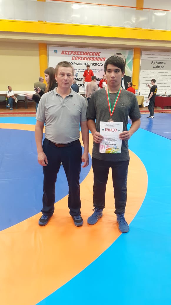 Воспитанники МБУ ДО "ДОО(П)Ц" Рыбно-Слободского муниципального района РТ - под руководством педагога дополнительного образования Шамсевалиева Г.Г. приняли участие на Всероссийских соревнованиях по борьбе на поясах среди юношей и девушек 2007-2008 г.р., посвящённые памяти Заслуженного тренера Республики Татарстан Загрутдинова Алмаса Талиповича, который прошел в г. Набережные Челны 22-24 сентября 2023 года. В весовой категории 77кг 3место занял Хисматов Альфис (тр. Шамсевалиев Г.Г.). Поздравляем спортсмена и педагога допобразования с отличным результатом! #борьбанапоясах #рыбнослободскийрайон #набережныечелны