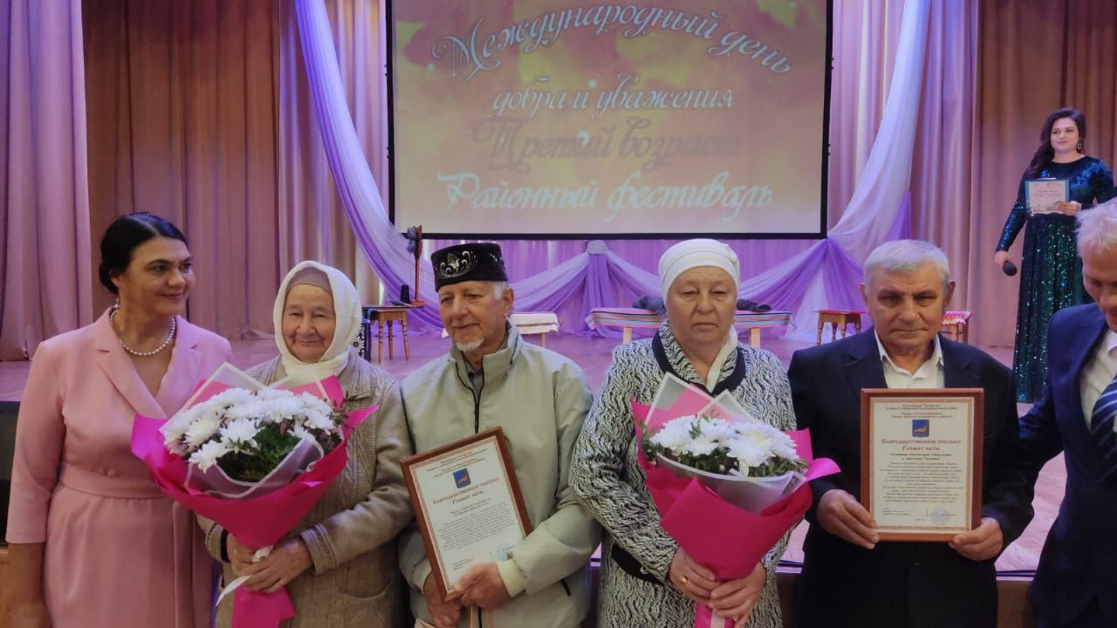 1 октября 2023г. в Международный день добра и уважения в районном Доме культуры поздравили старшее поколение нашего района. На мероприятии торжественно чествовали юбиляров семейной жизни совместно проживщих : 60 лет – Бакировых Габдрахима Сахибутдиновича и Муршиду Шагиахметовну, 50 лет - Галимовых Солтангарая Габдулловича и Анастасию Петровну. Каждая семья является примером взаимной любви и верности, добившиеся благополучия и воспитавшие детей достойными членами общества. Заместитель Главы Рыбно-Слободского муниципального района Республики Татарстан Ахметзянова Фирдания Гумаровна поздравила юбиляров семейной жизни и пожелала им крепкого здоровья.