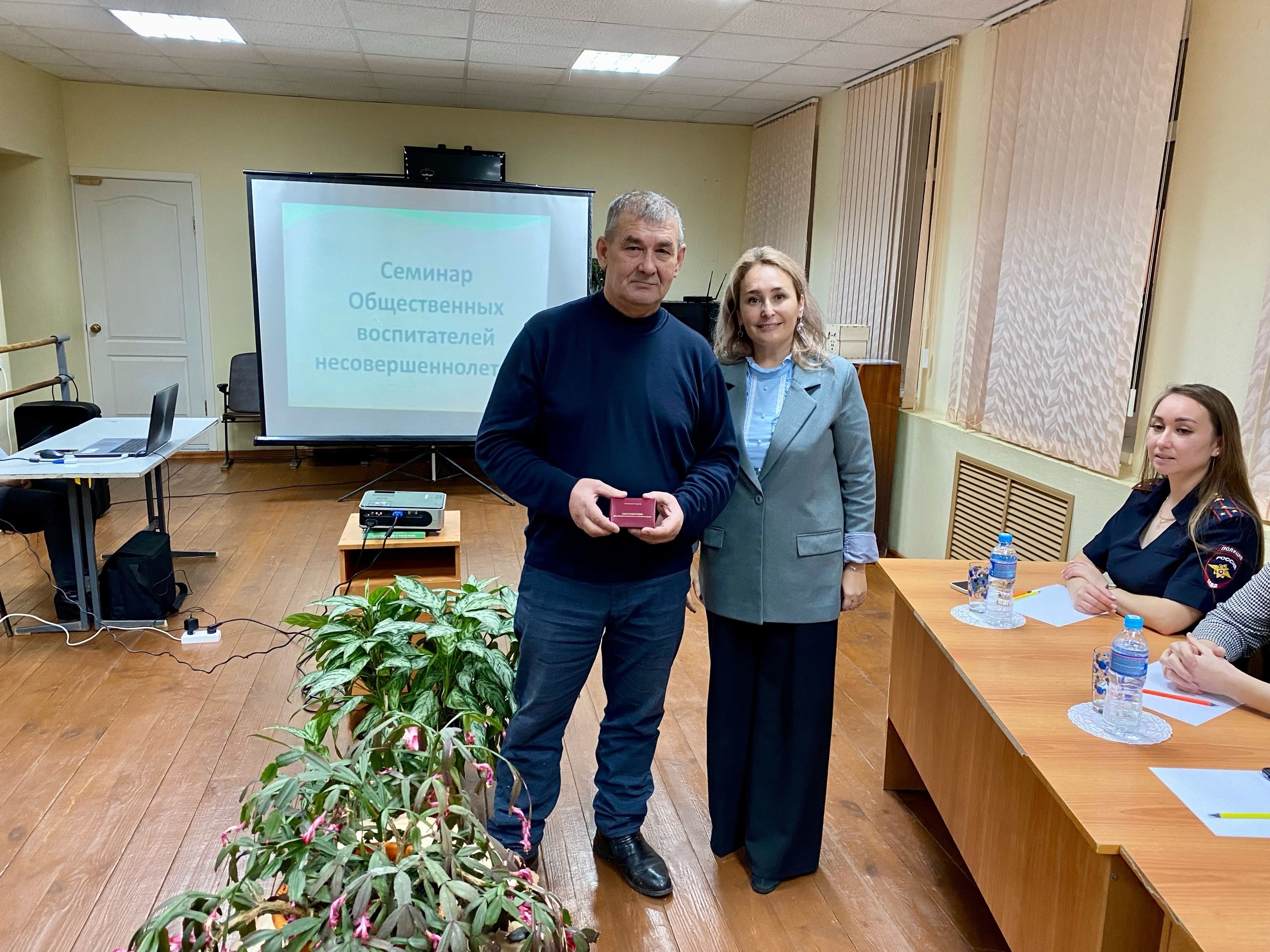 На семинаре вручили удостоверение общественного воспитателя Муталлапову Ильдусу Нурмухаметовичу. За активное участие в жизни несовершеннолетних. Заслушали выступление общественного воспитателя Бастрыгиной Евгении Сергеевны. Психологами общеобразовательных учреждений проведен тренинг по теме: “Работа по профилактике насилия и жестокого обращения с несовершеннолетними”.