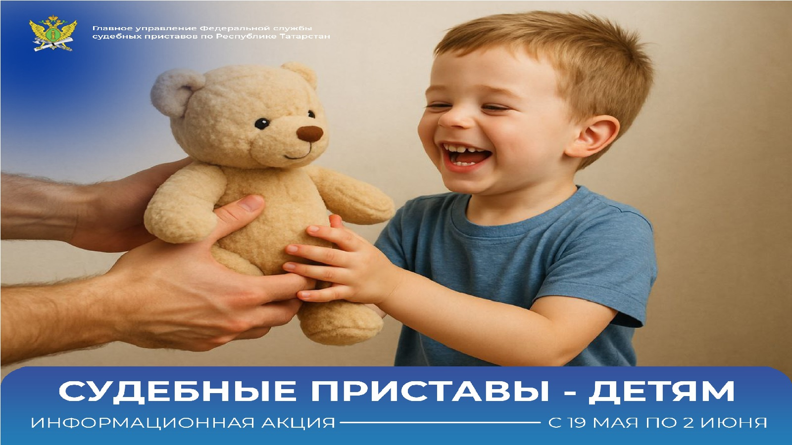 В преддверии Международного дня защиты детей Федеральная служба судебных приставов с 19 мая по 2 июня 2025 года проводит Всероссийскую акцию «Судебные приставы — детям». Мероприятие пройдет во всех регионах России, включая Республику Татарстан, и направлено на повышение эффективности взыскания алиментных платежей и привлечение внимания общественности к защите прав детей.