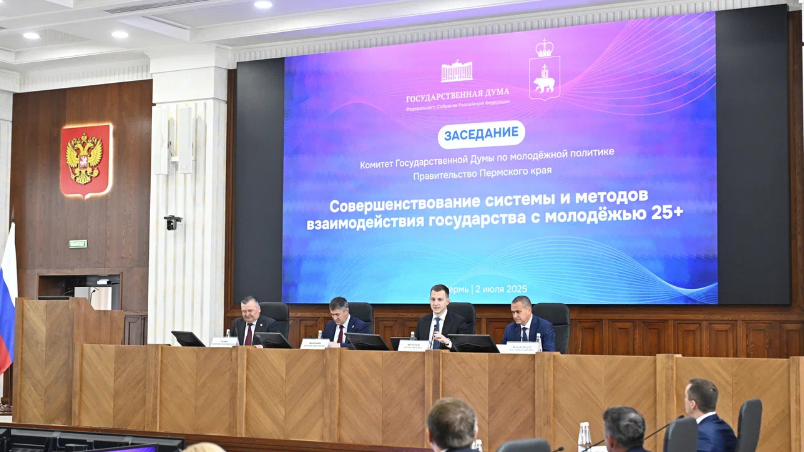 2 июля 2025 года в Перми состоялось выездное заседание Комитета Государственной Думы по молодежной политике на тему «Совершенствование системы и методов взаимодействия государства с молодежью 25+». Встреча собрала представителей федеральных и региональных органов власти, научного сообщества, общественных организаций и бизнеса.