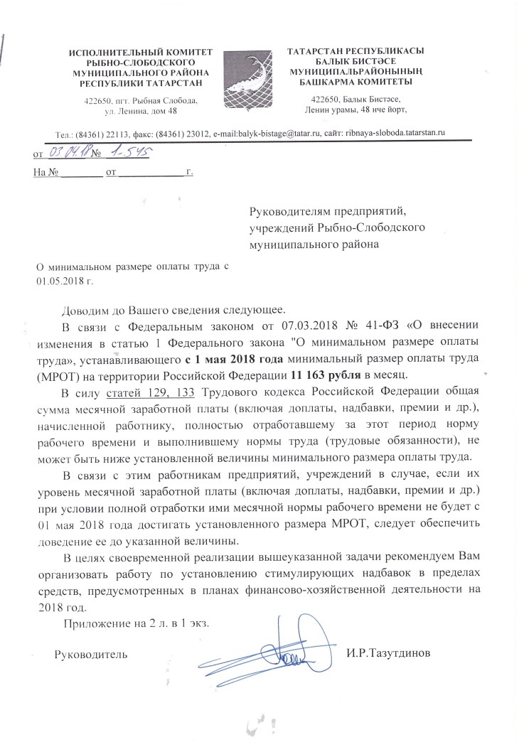 Хезмәткә түләүнең минималь күләме