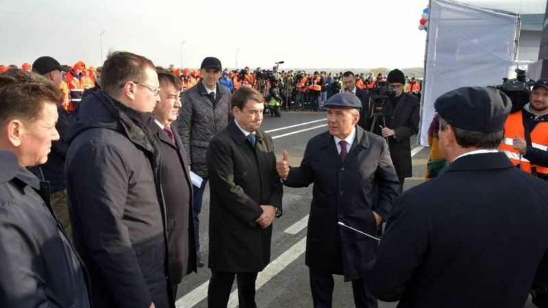 Татарстан Президенты Рөстәм Миңнеханов юлны ачуда катнашты. "Бу трассаны төзекләндерү - Кама аша салынган күпер кебек зур хыял иде. Биредә юл эшләре катлаулырак булды", - дип әйтте Рөстәм Миңнеханов.