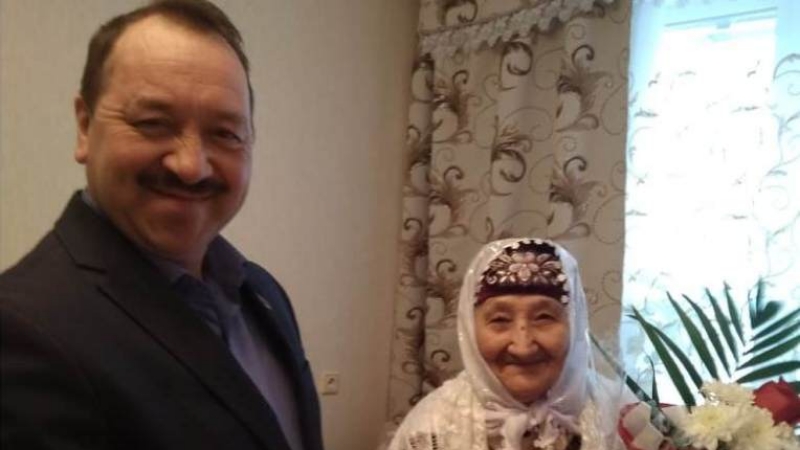 Юбиляр адресына ихлас теләкләр Югары Ырга авылы жирлеге Башлыгы Багаутдинов Ринат Нуретдин улыннан яңгырады. Россия Президенты Владимир Владимирович Путиннан открытка һәм Балык Бистәсе районы Башлыгы истәлекле бүләк тапшырды.