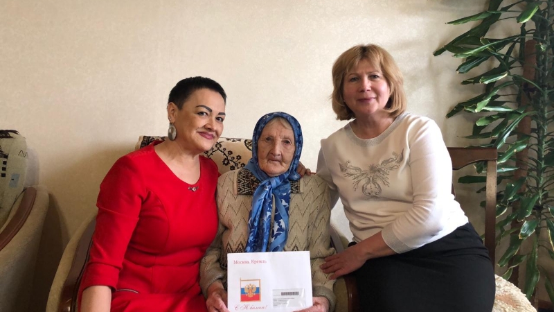 Россия Президенты Владимир Владимир улы Путиннан открытка һәм Балык Бистәсе муниципаль районы Башлыгы исеменнән истәлекле бүләк тапшырды.
