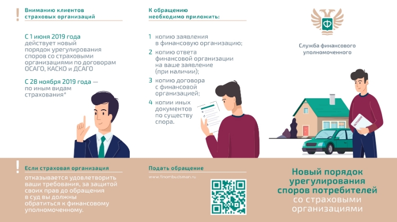 «Финанс хезмәтләрен кулланучылар хокуклары буенча вәкаләтле вәкил турында " 2018 елның 4 июнендәге 123-ФЗ номерлы Федераль закон нигезендә кулланучылар өчен мәҗбүри булган ОСАГО, КАСКО һәм ДСАГО килешүләре буенча иминият оешмалары белән бәхәсләрне җайга салуның яңа тәртибе билгеләнде: әгәр иминият оешмасы кулланучының таләпләрен канәгатьләндерүдән баш тартса, кулланучыга суд мөрәҗәгатенә кадәр үзенең хокукларын яклау өчен финанс вәкиленә мөрәҗәгать итәргә кирәк.