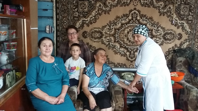 Балтач мәдәният йорты хезмәткәрләре, фельдшер Сәрия апай белән берлектә, балачактан инвалид Әхмәтшина Рәсимә Госман кызы янына бардылар. Ул абыйсы белән яши, алар безнең килүебезгә бик шат иде.