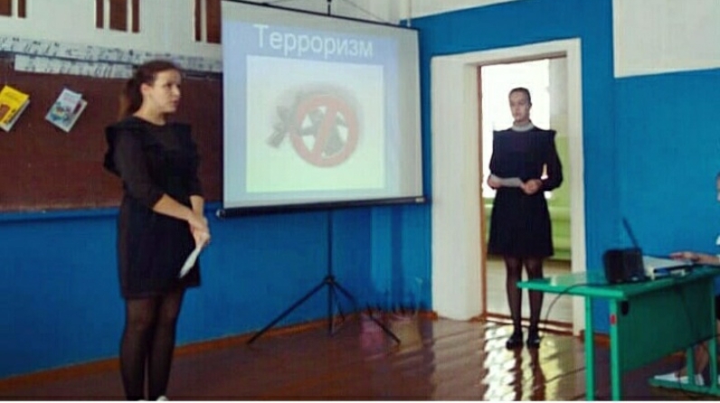 Биектау мәдәният йорты. Мәктәп белән берлектә "Терроризмга юк!".