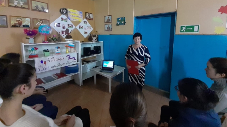 Уракчы мәдәният йорты. Югары сыйныф укучылары һәм студентлар белән Халыклар бердәмлеге көненә багышланган презентация күрсәтелде. Балалар әлеге датага багышланган видеоролик карадылар. Башкалабызның үзәгендә-Кызыл мәйданда урнашкан Кузьма Минин һәм Дмитрий Пожарский һәйкәленә виртуаль экскурсия. Тарих укытучысы Макарова А. Н.Россия турында иң кызыклы тарихи фактлар турында сөйләде. Илебез һәм халык өчен горурлык хисләре кичерү өчен Россия гимны яңгырады.