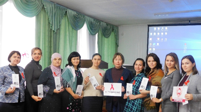 "Стоп/Вич/Спид" Россия куләм акция кысаларында, 26 нчы ноябрь көнне гаилә һәм балаларга социаль ярдәм күрсмәтү бүлеге хезмәткәрләре "Доверие - Ышаныч" халыкка социаль хезмәт күрсәтү комплекслы үзәге хезмәткәрләре һәм халыкны эш белән тәэмин итү үзәге хезмәткәрләре белән берлектә акция үткәрделәр.