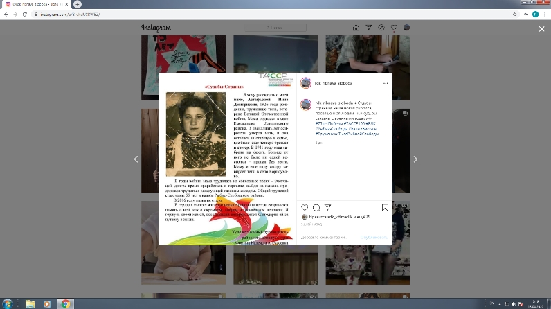 Район мәдәният йорты «Ил язмышлары». Бөек Ватан сугышында җиңүнең 75 еллыгын бәйрәм итү һәм ТАССР төзелүнең 100 еллыгын бәйрәм итү алдыннан, район мәдәният йорты «Ил язмышлары» дип исемләнгән онлайн рубрика башлап җибәрде.Биредә без сезне яшьлек еллары нәкъ менә авыр сугыш елларына эләккән герой-хатын-кызлар язмышы белән таныштырачакбыз.