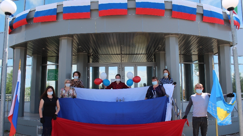 МБУ "РАЙОН МӘДӘНИЯТ ЙОРТЫ". 12 июнь-Россия көне. Россия флаглары. МБУ "Район мәдәният йорты". Рөстәм Змеев фотосы.