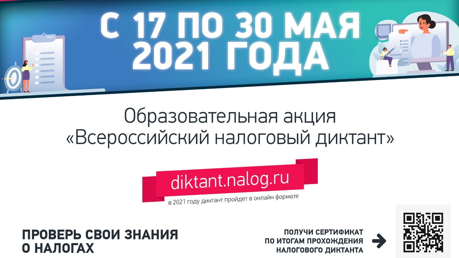 17 майдан 30 майга кадәр Россиядә масштаблы белем бирү акциясе – «Бөтенроссия салым диктанты»старт ала.