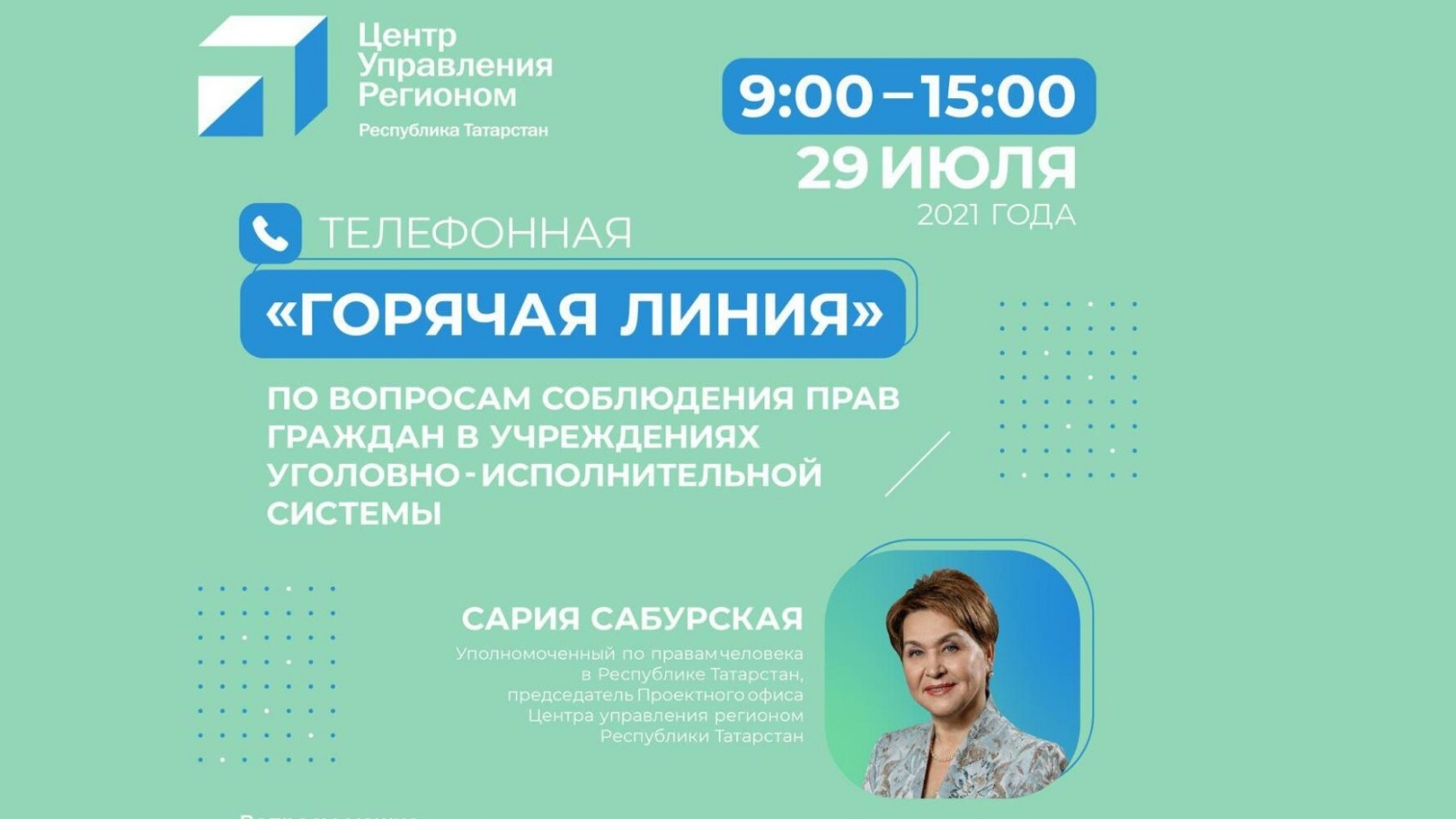 2021 елның 29 июлендә Татарстан Республикасында Кеше хокуклары буенча вәкаләтле вәкил мөмкинлекләре чикләнгән гражданнарның хокукларын яклау мәсьәләләре буенча «кайнар линия» үткәрә. Татарстан Республикасында Кеше хокуклары буенча вәкаләтле вәкил Аппараты, Россия Федерациясе Җәзаларны үтәтү федераль хезмәтенең Татарстан Республикасы буенча идарәсе, Татарстан Республикасы Иҗтимагый күзәтчелек комиссиясе, Татарстан Республикасы Прокуратурасы вәкилләре тулы мәгълүмат, хокукый консультация алырга, бәхәсле хәлләрне аңлатырга ярдәм итәчәк. "Кайнар линия" телефоны: (843) 236-00-71. Сез шулай ук аласыз җибәрергә үз сорауларын WhatsApp номеры буенча телефон +7 (939) 345-37-50. Консультация вакыты: 09.00 дән 15.00 сәгатькә кадәр.