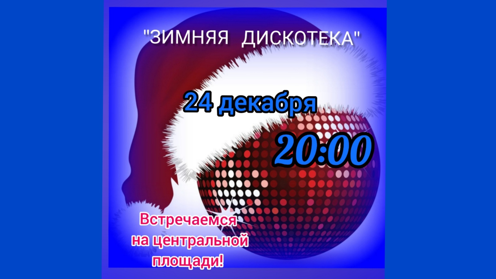 24 декабрь барыгызны да "Кышкы дискотека"бәйрәменә чакырабыз Сезнең өчен: -бию -җыр -күңел ачу уеннары Башлана 20: 00 сәгатьтә