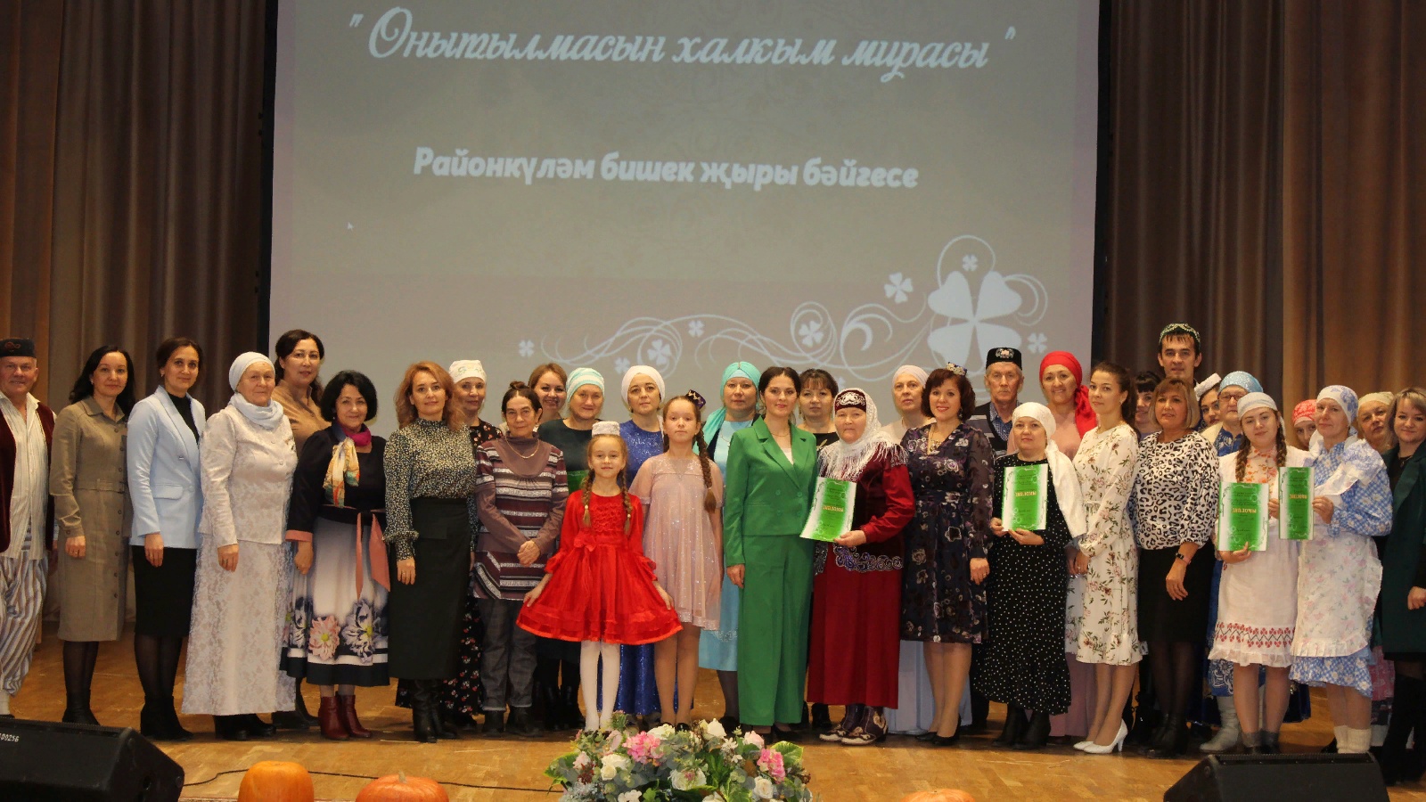 Бүген район мәдәният йортында “Онытылмас халкым мирасы” дип исемләнгән гаҗәеп матур кичә узды. Фойеда кабактан пешерелгән ризыклардан күргәзмә оештырылса, сәхнәне бишек җырларыннан торган районкүләм бәйге бизәде. Дистәдән артык номинация билгеләнеп, катнашучыларның һәркайсына Рәхмәт хатлары, бүләкләр тапшырылды. Ахырда чыгыш ясаган район башкарма комитеты җитәкчесенең социаль мәсьәләләр буенча урынбасары Айгөл Вафина теләкләре исә күңелләрдән күңелләргә күчте: “Илләребез тыныч булсын, йортларыбызда бишек җыры тынмасын!”