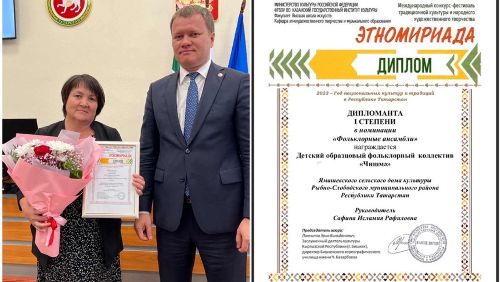 Ямаш авылы мәдәният йортының «Чишмә» үрнәк балалар фольклор коллективы «Этномириада» Халыкара Традицион мәдәният һәм халык сәнгать иҗаты конкурс-фестиваленең «фольклор ансамбльләре» номинациясендә I дәрәҗә дипломант исеменә лаек булды