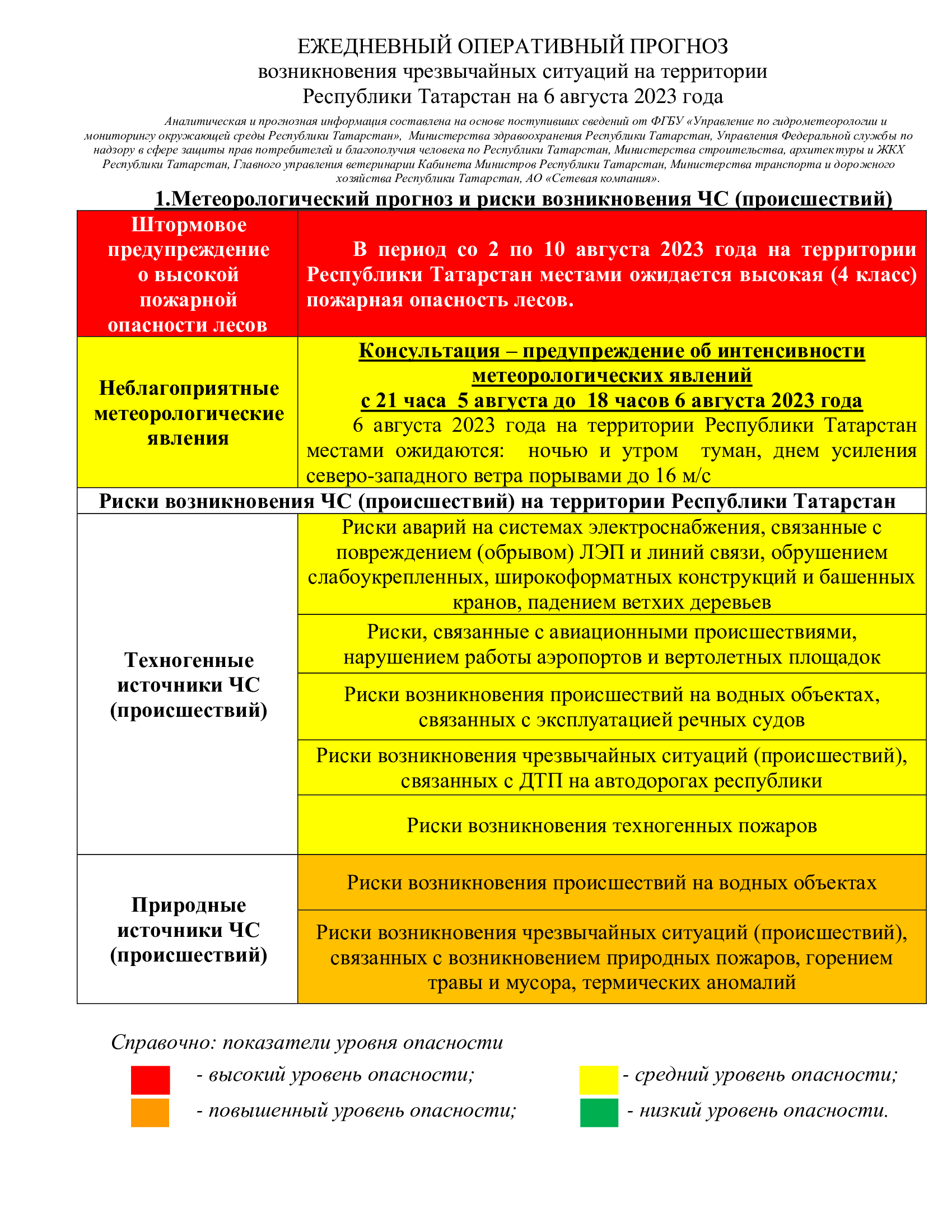 2023 елның 6 августына Татарстан Республикасы территориясендә гадәттән тыш хәлләр килеп чыгуның көндәлек оператив фаразы