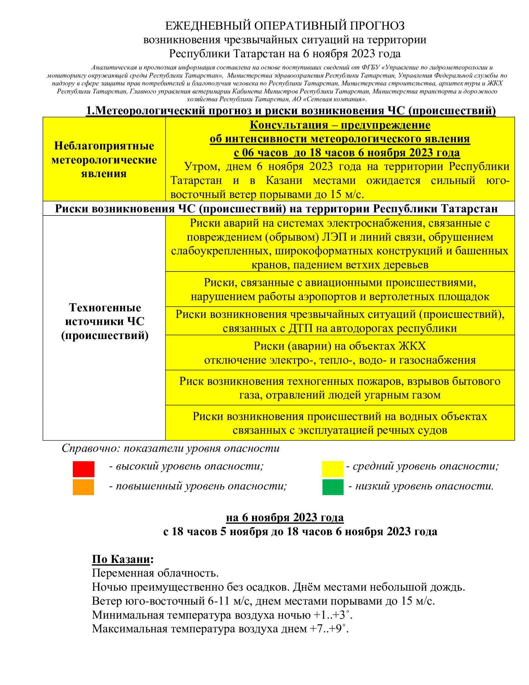КӨНДӘЛЕК ОПЕРАТИВ ФАРАЗ территориядә гадәттән тыш хәлләр килеп чыгуы 2023 елның 6 ноябренә Татарстан Республикасы