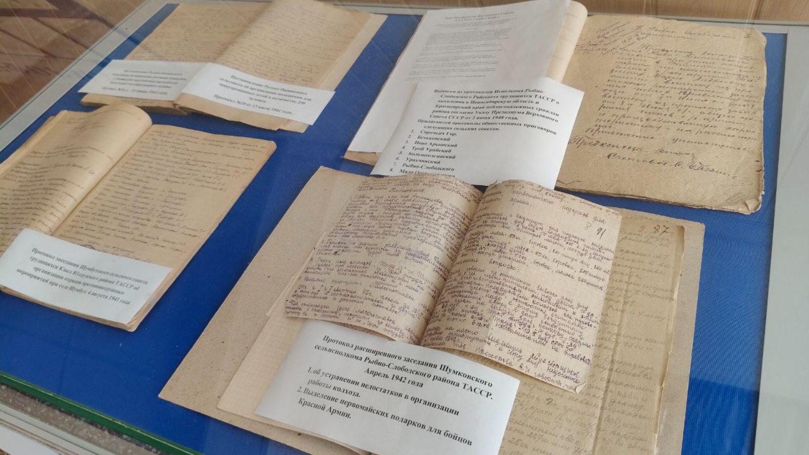 Балык Бистәсе муниципаль районы администрациясе бинасында «Хәтер һәм кайгы көненә " багышланган район Башкарма комитетының архив документлары күргәзмәсе оештырылды. Танышу өчен тәкъдим ителде: 1) ТАССРның Кызыл Йолдыз районы Шомбыт авыл Советы, хезмәтчәннәр утырышының 1941 елның 4 августындагы Шомбыт авылы янында һава һөҗүменә каршы чаралар отрядларын оештыру турында беркетмәсе. 2) ТАССРның Балык Бистәсе районы Шумково авыл башкарма комитетының колхоз эшен оештырудагы җитешсезлекләрне бетерү, Кызыл Армия сугышчыларына Беренче май бүләкләре бирү турындагы киңәйтелгән утырышы беркетмәсе (документ буенча). 3) ТАССР Балык Бистәсе районы хезмәтчәннәренең Рус Әшнәге авыл советы беркетмәсе " авыл советы территориясендә 1941 елның 13 июлендә эвакуацияләнгән балалар арасыннан балалар йорты төзү турында.» Документлар белән дүшәмбедән җомгага кадәр 8:00-17:00 сәгатьләрдә 12:00дән 13:00гә кадәр тәнәфес белән танышырга мөмкин.